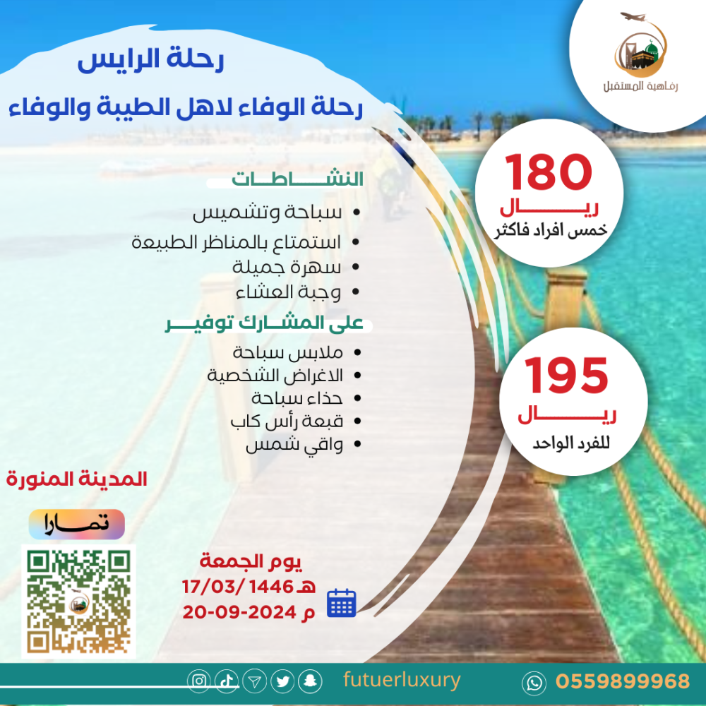 💰 السعر للشخص الواحد شامل الخدمات المقدمة: 195 ﷼