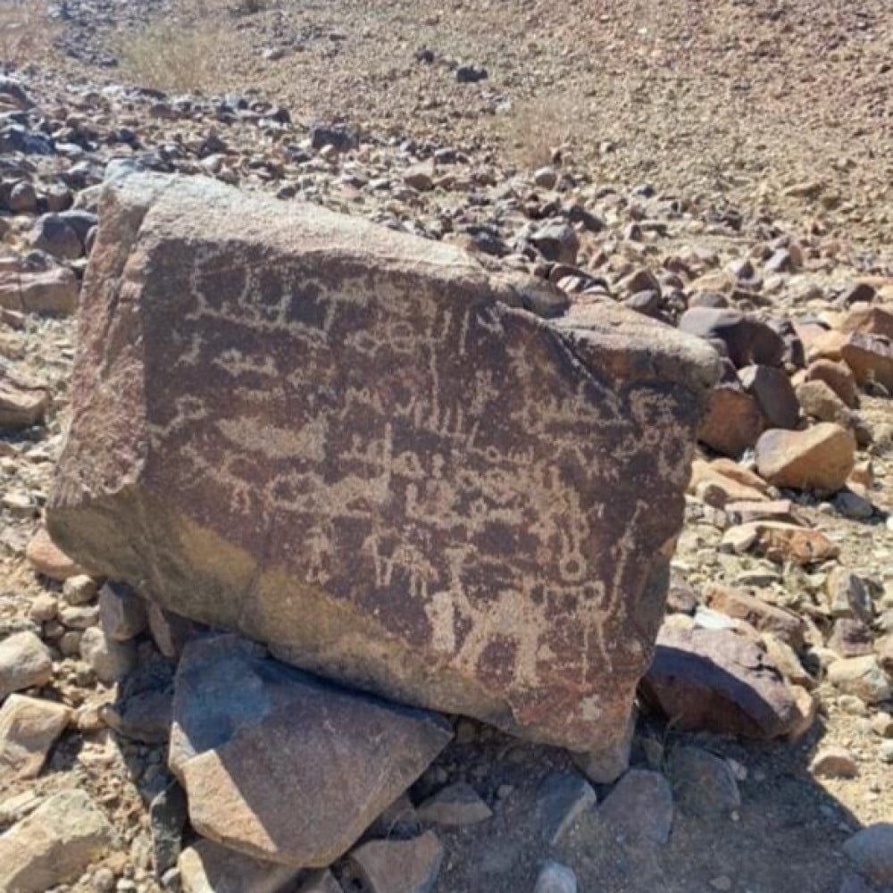 الصخرة التي استضل تحتها الرسول صلى الله علية وسلم وصاحبة ابي بكر الصديق ودليلهما عبد الله ابن الأريقط عند قائم الظهيرة