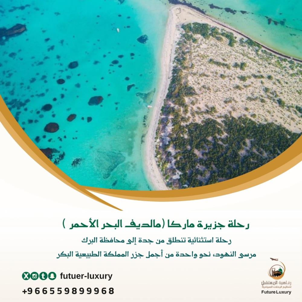 🛥🌧️ رحلة جزيرة ماركا – مالديف البحر الأحمر 🌧️🛥رحلة استثنائية تنطلق من جدة إلى محافظة البرك – مرسى النهود، نحو واحدة من أجمل جزر المملكة الطبيعية البكر 🌴✨